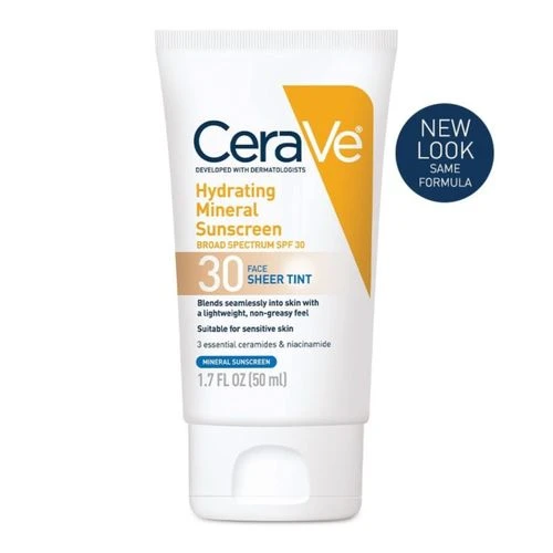 CeraVe Hydrating Mineral Sunscreen (50ml) is a 100% mineral-based (physical) sunblock, typically formulated with Broad Spectrum SPF 50 using Zinc Oxide and Titanium Dioxide.